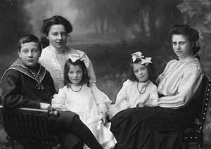 I was especially fond of the family photograph were the family is seated in front of the house. The parents are taking tea, and the children are all present. My grandmother and her twin sister Editha are seated on the two entrance columns. Above their heads is a coat of arms with a seated deer and La—nd underneath. Indeed, when my grandmother saw the photographs she was so moved that she began to cry and this made a great impression on me, as I rarely saw adults cry.
