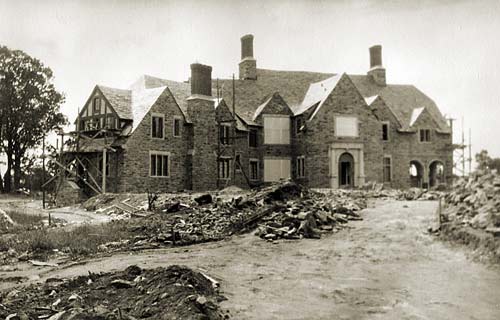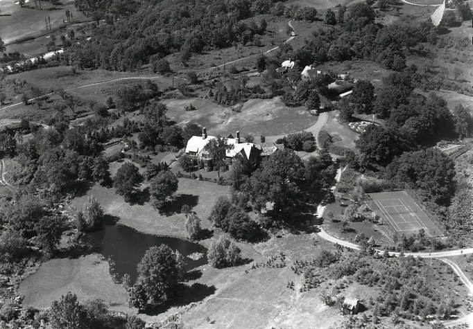 We have also been told that the house still stands, but much has changed. Most of the acreage around the house was sold off into smaller lots. The gatehouse was sold, and the driveway relocated. The façade of the house was changed, except for the front entry, and garages have been added onto the kitchen end. We believe one of these houses pictured here may be Tarantara, but we could not tell you which.
