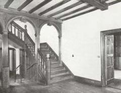 with the kitchen angled off the upper side the dining room. There were other small rooms here and there. A large powder room, and closet which would have been an elevator, and a very large wide staircase off the entry. There was also a great wind-up grandfather clock on the first landing of that magnificent stairway. Papa used to wind it with a big key every Sunday.