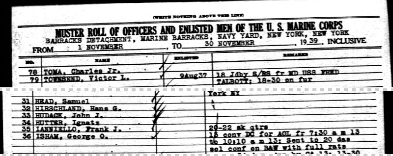 My uncle was in the Marines, I believe, until he was 29 and although I was quite young when he told us these stories, I know that he wanted to be a career soldier. Because he was German, the military sent him to Japan instead of Germany and he had his back broken there. He knew some of the guys that are in the statute of Iwo Jima. He was given a silver star and a purple heart and an honorable discharge. It was after his discharge that he attended NYU. (Note that Hans is the only Hirschland we found a record of who served in the US Military during WWII. Charles Hannam, née Karl Hirschland, served in the Britsh military, but was also kept out of the European theater.)